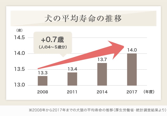 近年、医療の進歩や飼育環境の向上により、犬の平均寿命が伸びていることをご存知ですか?