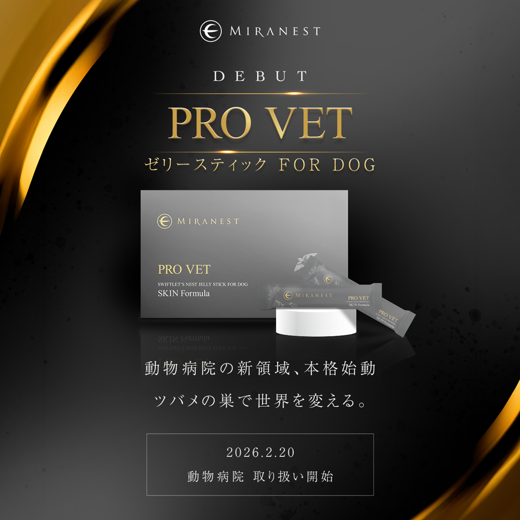 この度、その活動がさらに前進し、病院専売商品である「MIRANEST PRO VET(プロベット)」が、全国の動物病院での取り扱いを開始いたしました。